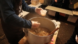 冬の寒い時期に体の温まる、きのこ汁の無料の振舞いを実施。