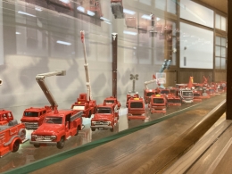 春の全国火災予防運動にちなみ消防車や救急車などのミニカーを展示します。