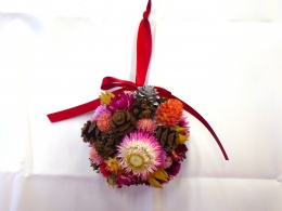 貝細工や千日紅など、きれいなお花をリボンで飾り付けるクラフト体験を実施。