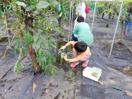 里山文化ゾーンには、ゲンゴロウたちの棲むビオトープ池があります。ゲンゴロウたちの棲み家を維持するため草取りなど手入れ作業をします。ゲンゴロウたちがいるか確かめるため、網を使って探してみましょう。