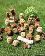 たわしを使ってかわいい動物(りす、うさぎ、ねずみ、ふくろう)を作ります。