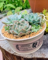多肉植物の寄せ植えやリメイク鉢、ガーデンオーナメント、多肉植物をモチーフにした雑貨を販売しています。