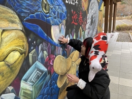 錦鯉の被り物でおなじみの「錦鯉野アキコ」さんによる、黒板アートが今年も登場!