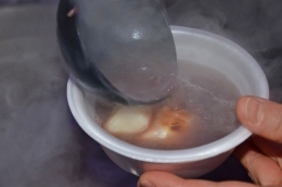 炭火でお餅を焼いて、体がほっこり温まるおしるこづくりです。
