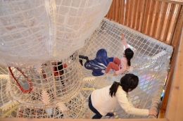 ネットジャングルジムにボールプール。天気が悪くても楽しめる「遊び」の拠点です。