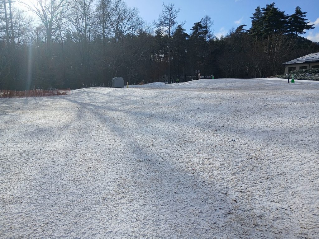まだまだ積雪は少なく1cm以下。うっすらと芝生が見えている状態です。