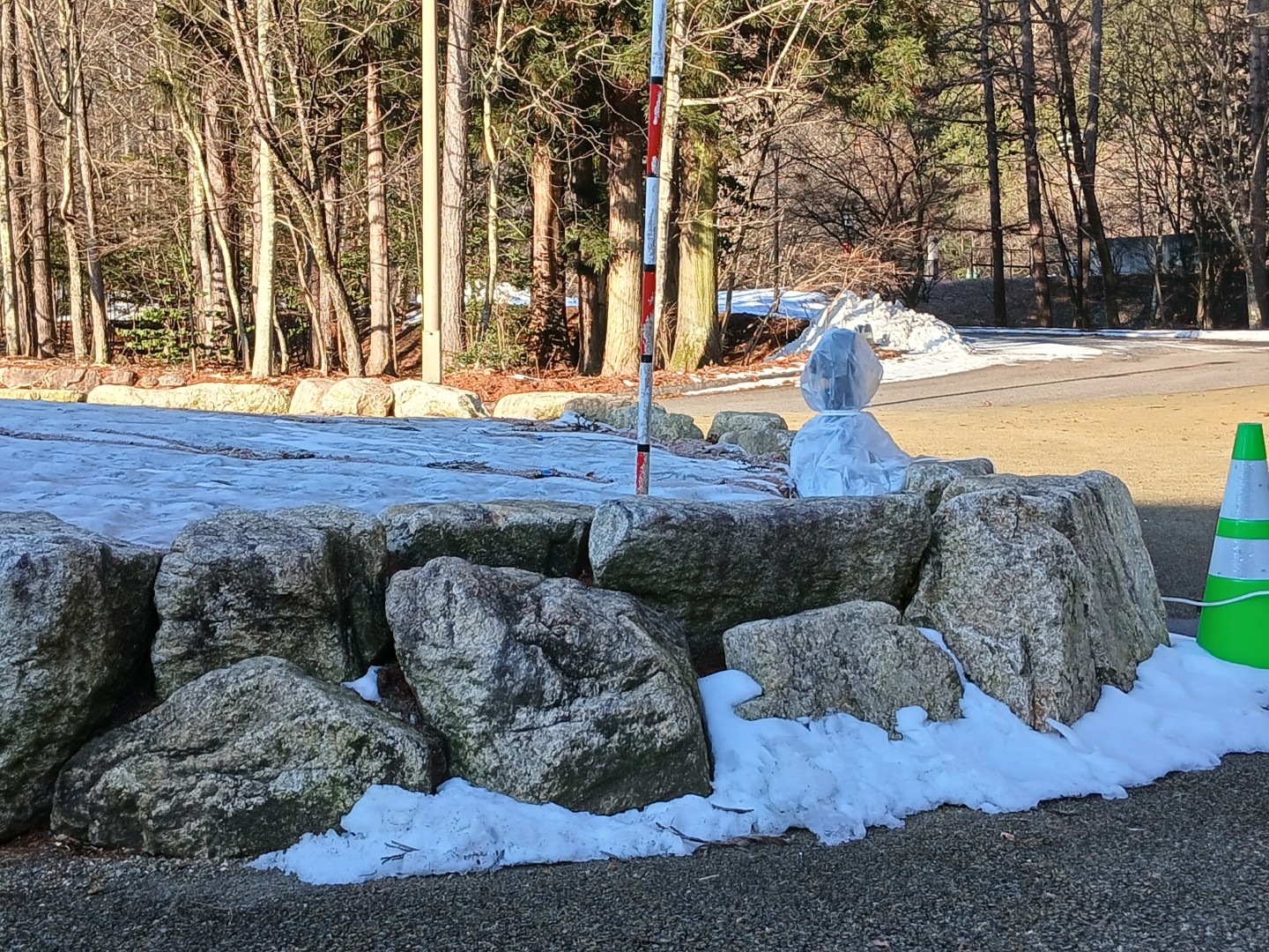 園内の雪や氷は解けてシャバシャバのシャーベット状になっています。
