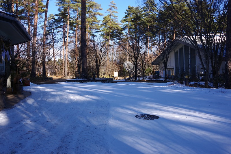 池の南側は斜面の陰になるので雪が残ります。この場所は両脇に雪が捨てられるのでグッド。今日は積雪量が少ないので比較的楽でしたが、雪が多いと重労働です。雪のイルミネーションも嬉しいですが、雪かきは無い方が良いですね。