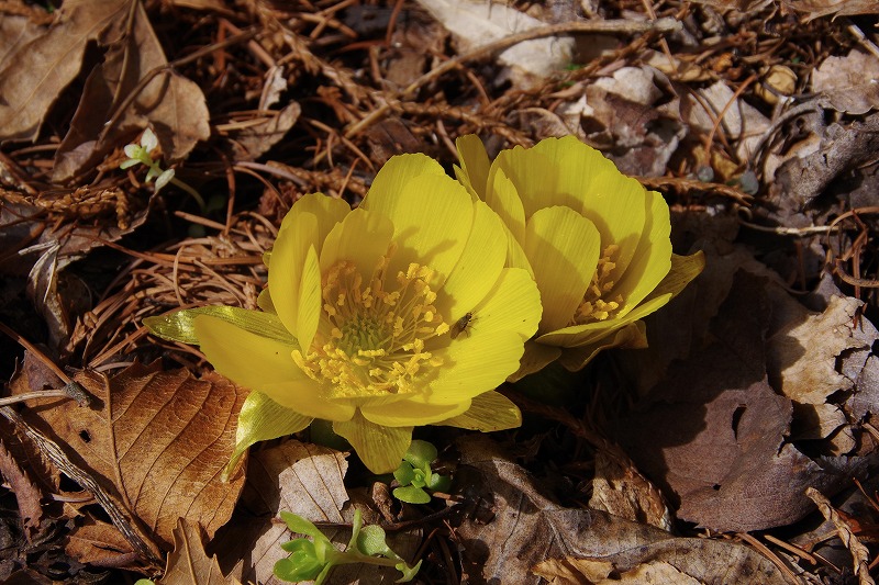 こちらは一昨日の写真です。朝つぼみだったのが、午後になって2輪だけ開花しました。まだ多くは落ち葉の下です。これから少しずつ開花していきますよ。