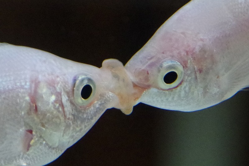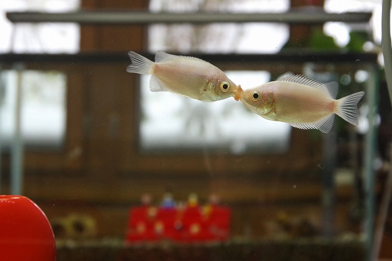 10~15分程見ているとかなりの確率でキスをします。水槽に近づき過ぎるとやらなくなるので、少し離れて見てくださいね。