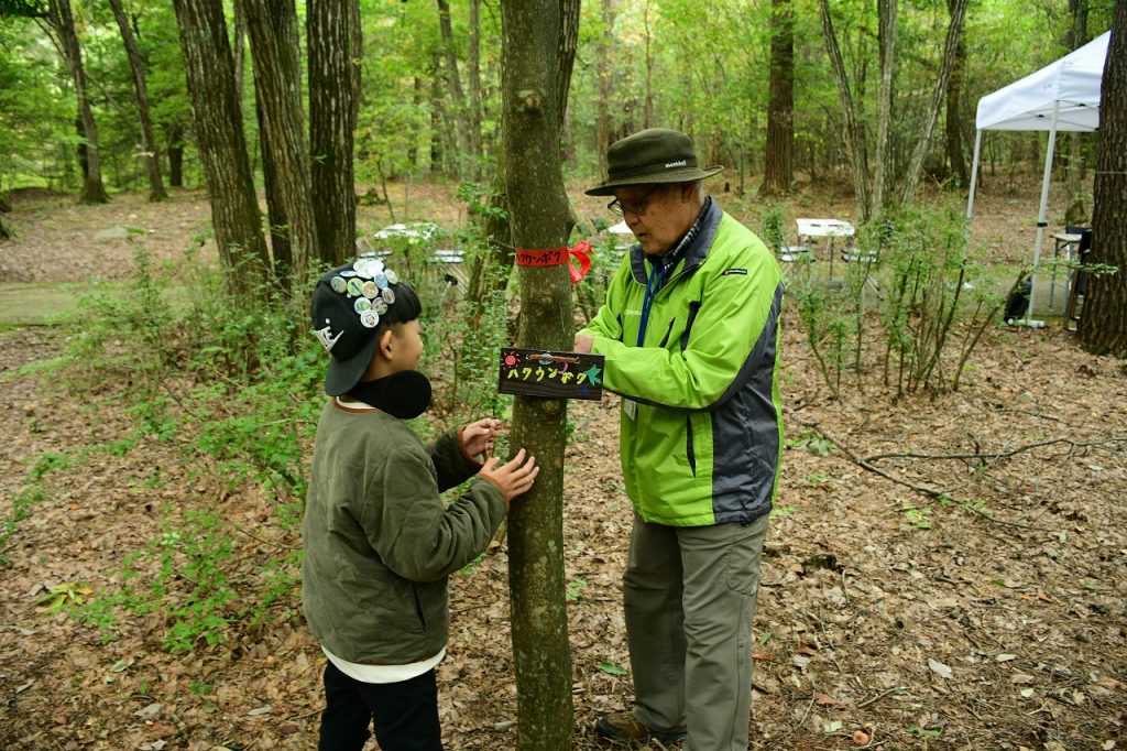 仕上げに、選んだ木へ名札を取り付けて完成!