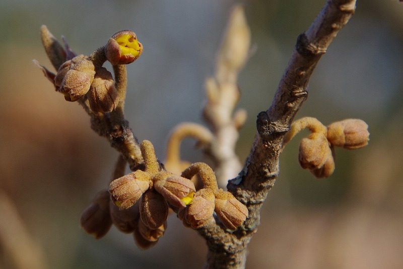 この付近にある園芸種のマンサクもほころんでいます。例年に比べこの木の花芽は極端に少ないですが、花が大きいので咲くのが楽しみです。