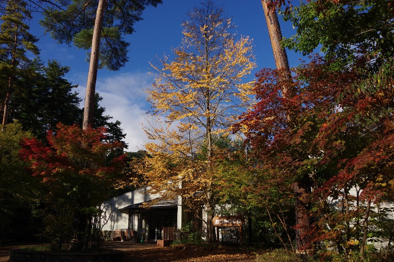 こちらも池近くにあるエドヒガン。芝生の上には鮮やかな落ち葉がたくさんです。公園の紅葉と一緒に落ち葉も楽しんでくださいね。