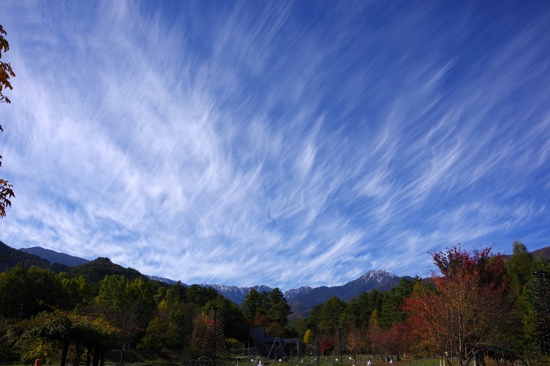 最初の写真からちょうど1時間後。西の空には白い筋状の雲が現われました。数日おきに変わる秋の空ですが、1日の中でも変わりやすいようですね。