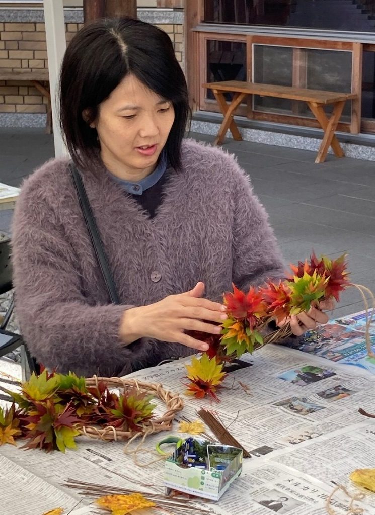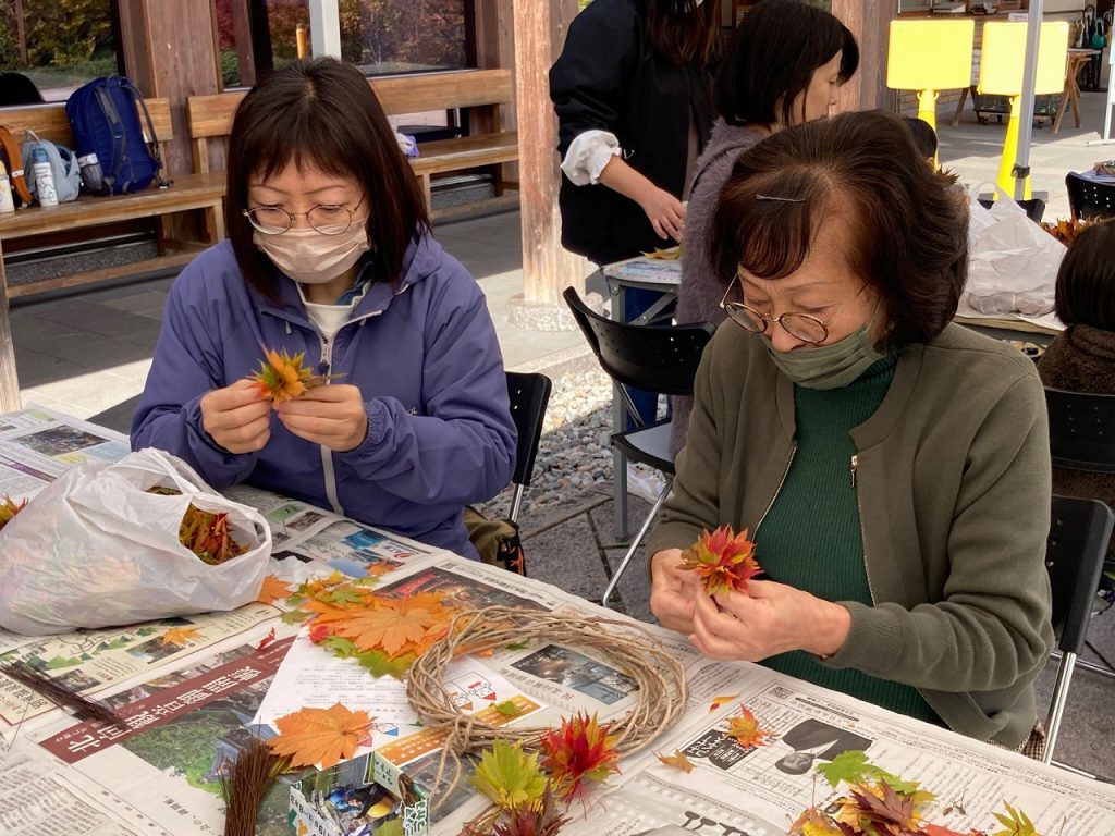 先週は色づいた葉っぱを利用して「紅葉を集めてリースを作ろう」の体験が開催されました。