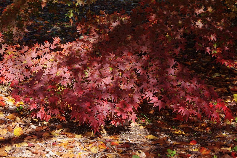 最も古墳に近いイロハモミジは、一番低い枝が地面スレスレです。その距離僅か5㎝程。見上げなくてもいいので、チビッ子も目の前で楽しむことが出来ます。