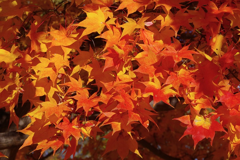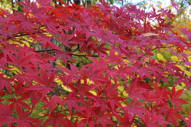 最初の写真は公園で見頃になっているオオモミジ。イロハモミジよりも大きく、葉の面積も大きいのが一般的。誰が見てもオオモミジとすぐにわかりますね。