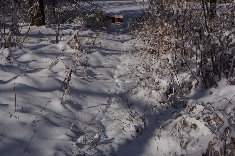こちらも野原。緩くカーブしながら足跡が続いています。整然と並んでいるので、同じペースで歩いているのがわかりますね。