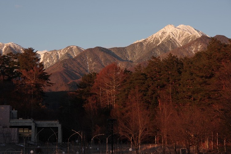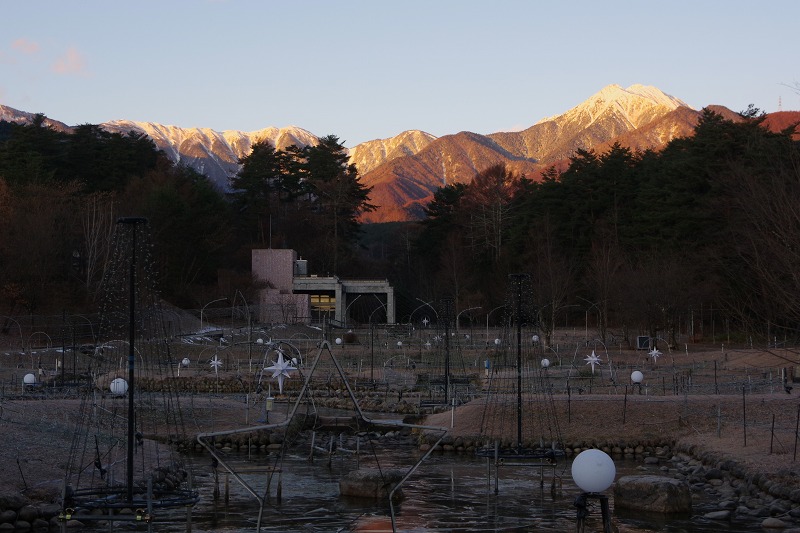 朝6時50分頃の公園の様子。ちょうど日の出の時間には山肌が赤く染まります。本当はもう少し前に、一瞬ピンク色の染まる瞬間があります。もうちょっと早く来れば撮影できるのですが、もうちょっとがなかなか出来ないのです・・・