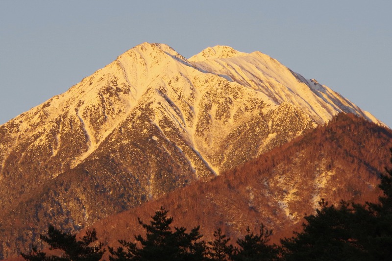 常念岳の山頂付近。日の出時間の短い時間だけの表情です。
