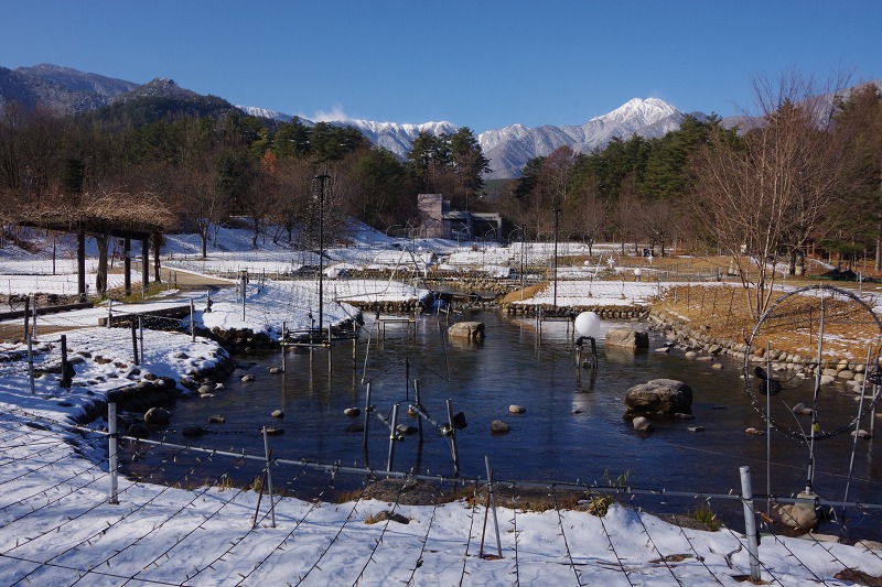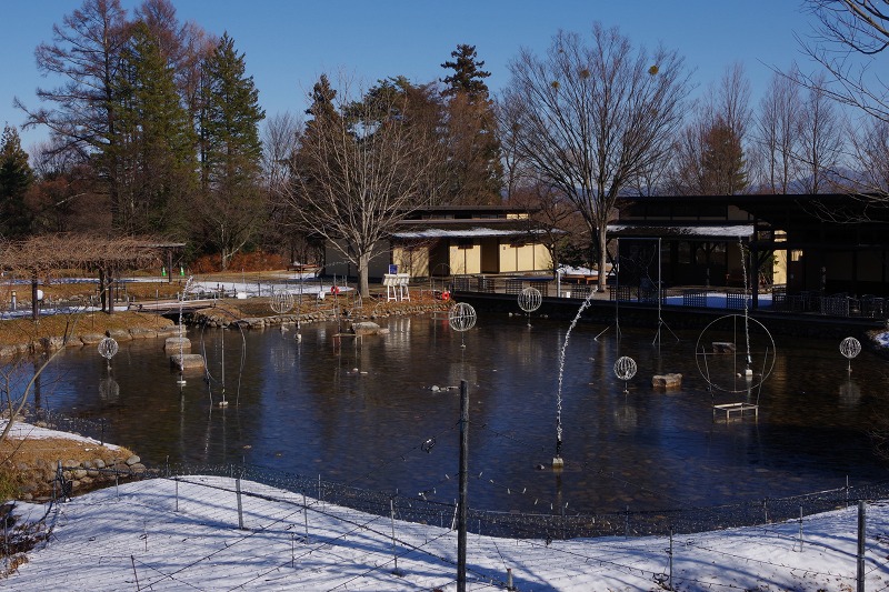 今朝の公園は氷点下5℃位まで冷え込みました。気温は下がりましたが、日中は穏やかなお天気になりました。池の氷もカッチカチに凍っていますよ。