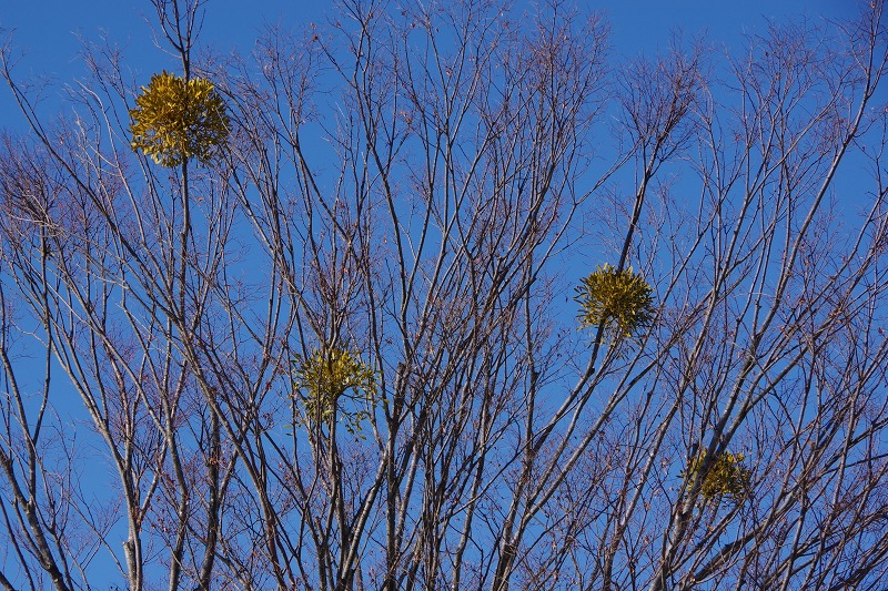 ヤドリギが付いていました。先日紹介したヤドリギは葉が無く黄色い実が生っていましたが、こちらでは実は無かったのですが葉は茂っていましたよ。