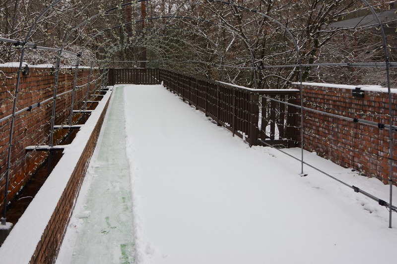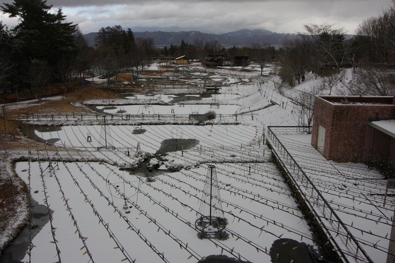 今日は9時前から雪が降り始め、11時過ぎに止みました。公園より低い安曇野市街地には降らなかったようなので、山から雪雲が流れてきたようですね。