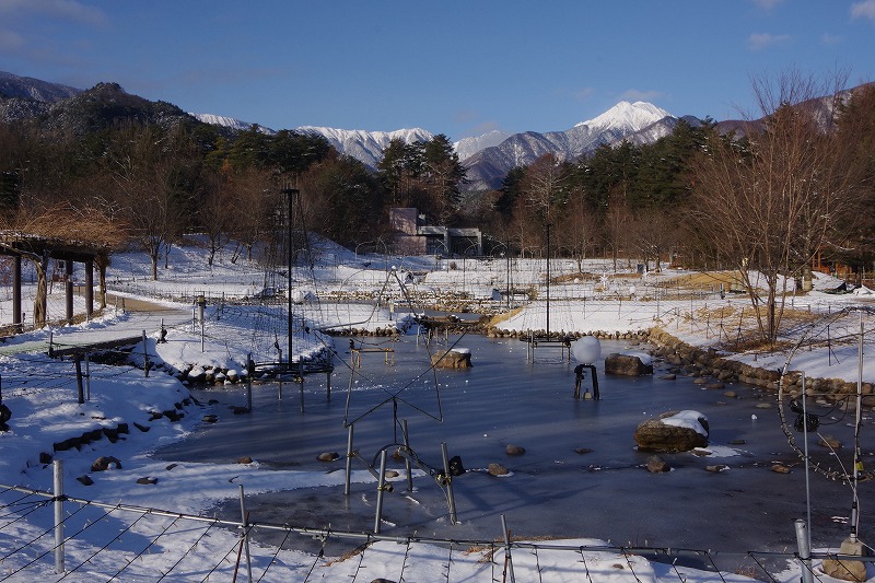 休園日の今日は氷点下9℃台まで下がりました。池に張った氷もカチカチです。諏訪湖の御神渡りも気になりますが、公園の池にも御神渡りが出来ないかな?
