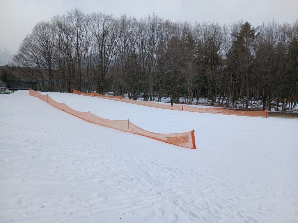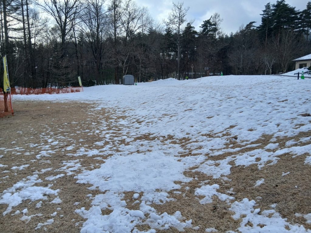 雪は少ないですが、気温が低いのでアルプス広場のそりゲレンデはコンディション良好です。