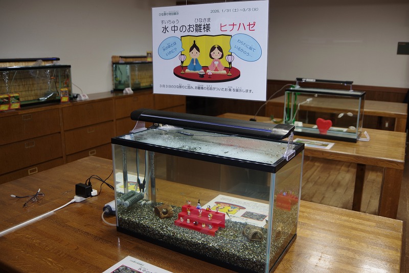 あづみの学校の理科教室では、ひな祭り特別展示『水中のお雛様 ヒナハゼ』を開催します。本来は明後日からですが、一足早く完成しました。