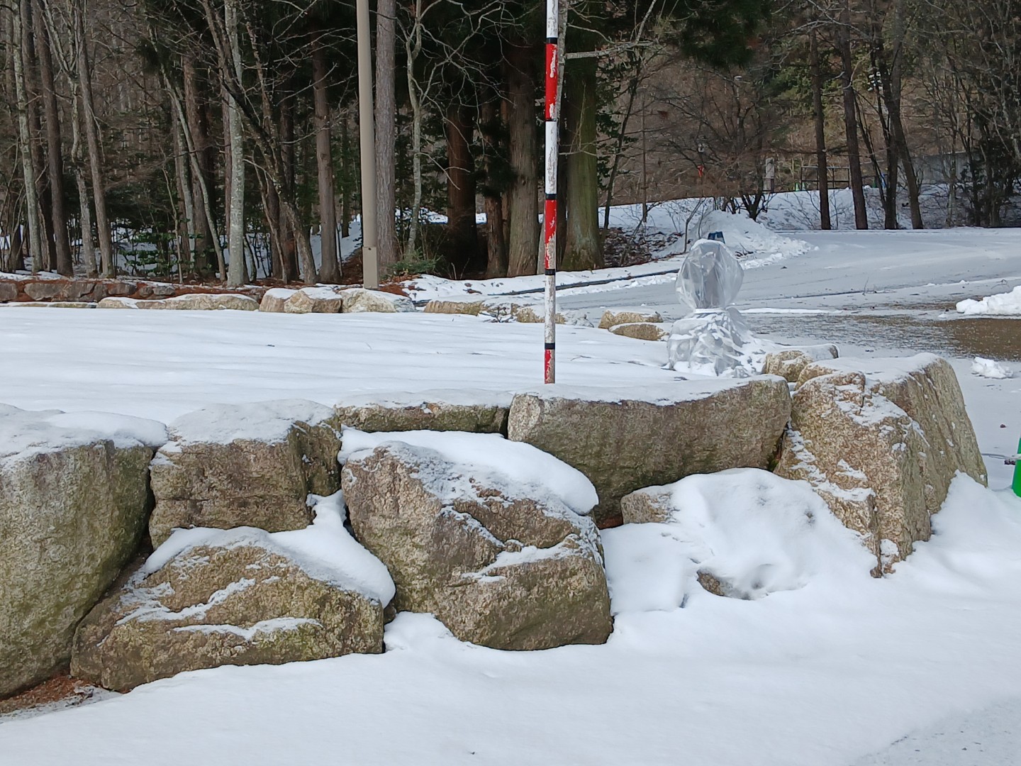 粉糖のように雪がうっすら乗って、積雪1cm以下。
