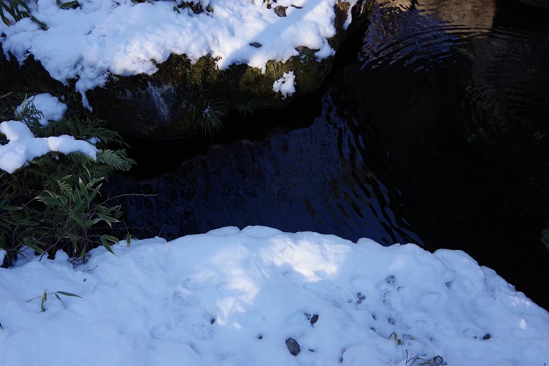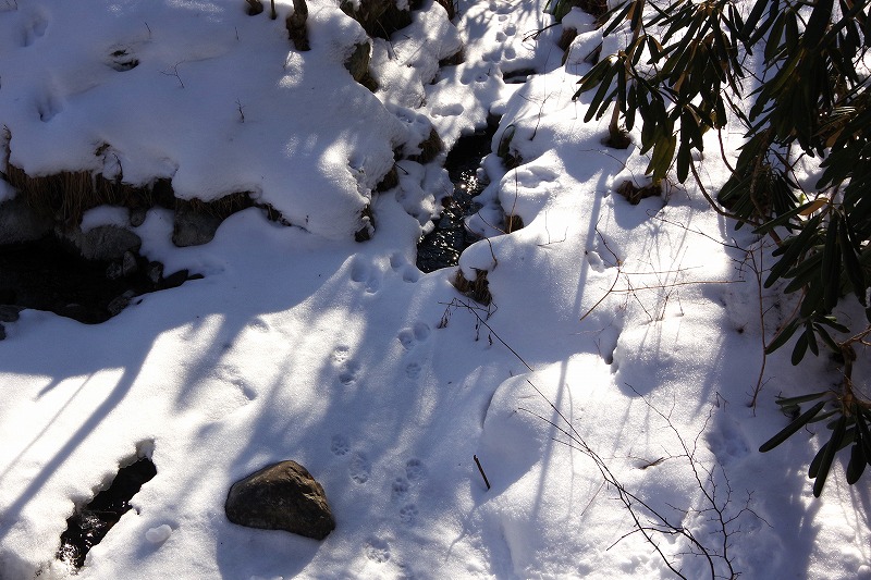 さらにレストラン前の小川に積もった雪の上にも。みんなあづみの学校周辺で見つけたので、同じ個体かもしれません。ホンドテンかハクビシンか?一度は姿を確かめたいですね。