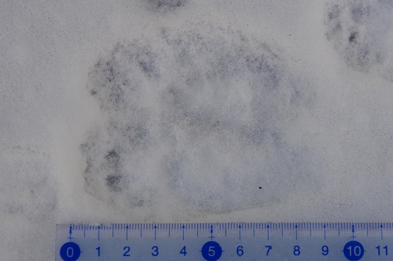 大きさは6~8㎝ほど。このような足跡はずっとホンドテンだと思っていたのですが、テンの足跡はもう少し小さいようなのです。次の候補は体の大きなハクビシン。どちらも公園周辺で目撃されていますよ。