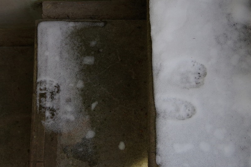 少し前にも別の屋外水槽の足場の上で、同じような足跡がありました。
