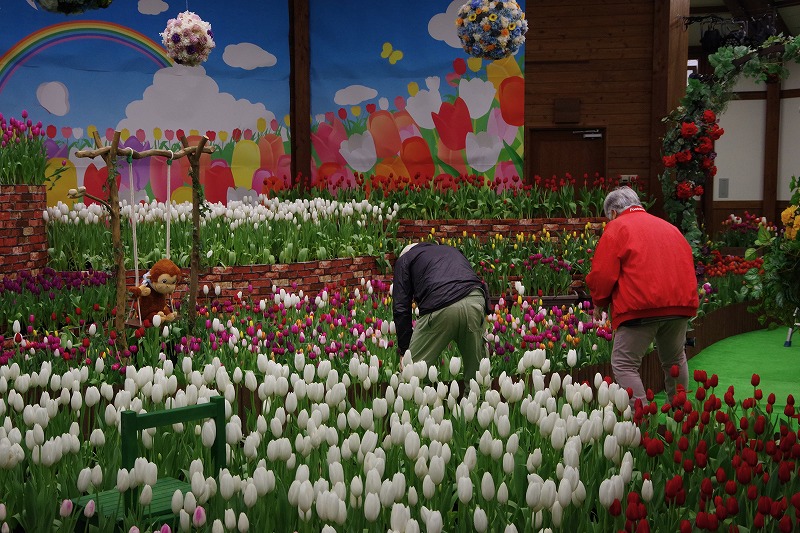 今日は休園日です。あづみの学校多目的ホールで開催中の『インドアガーデン アイスチューリップの庭』も後半戦になりました。