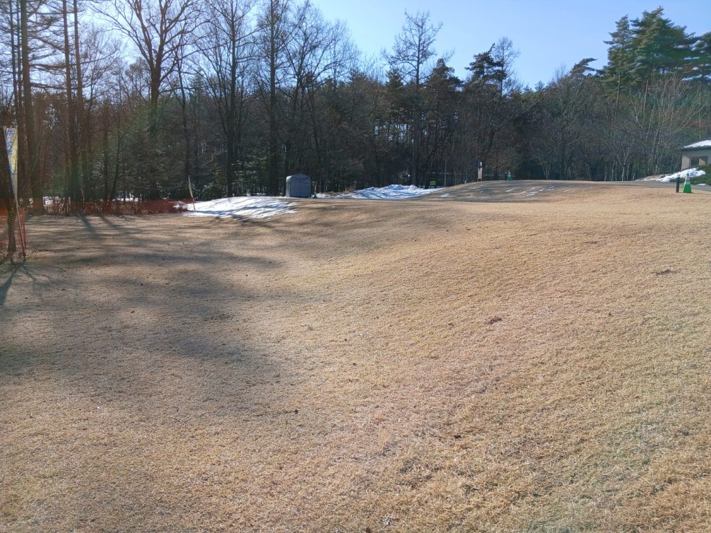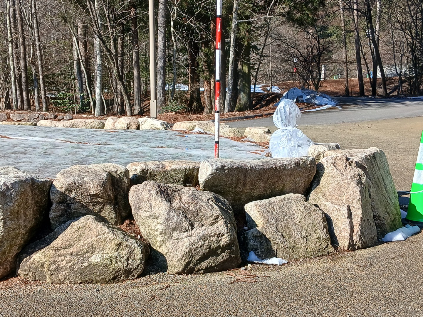 アルプス広場や入口広場に残った雪も、氷になってしまいました。