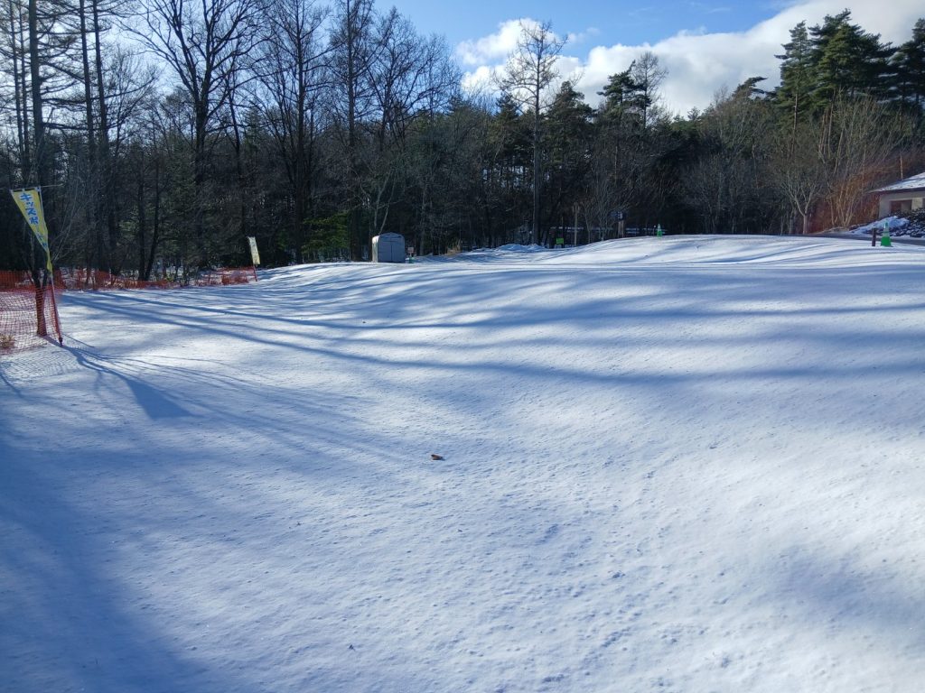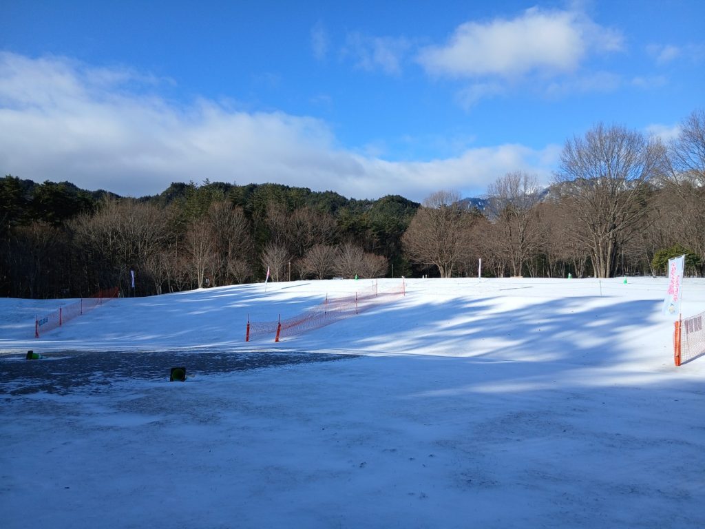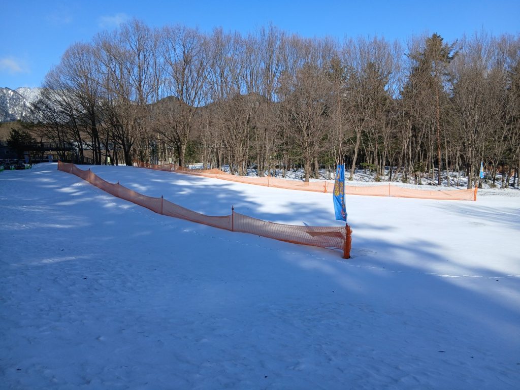 そりゲレンデは、一見、白く見えますが薄く乗っている程度。