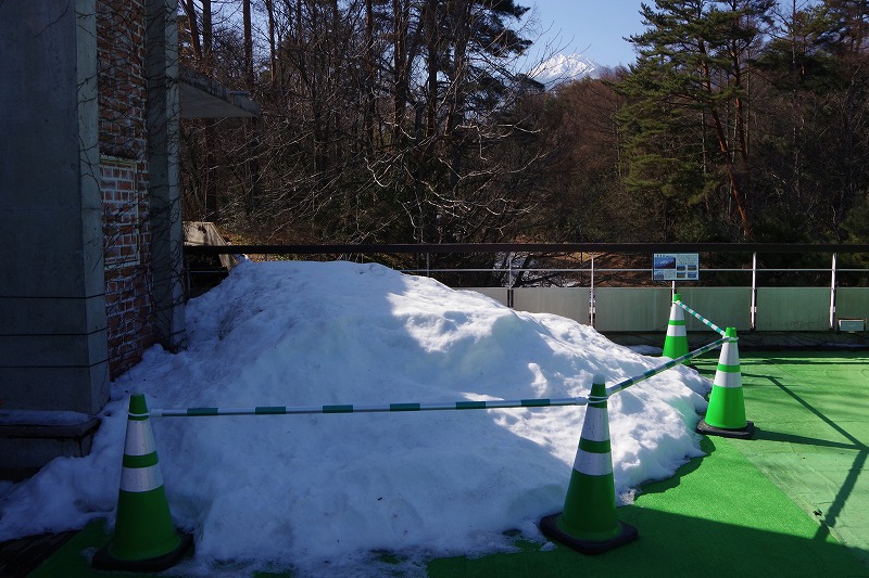 こちらは今月15日の写真。冬の間、展望テラスに積もった雪を集めた場所です。1月にたくさん降ったので、このようになりましたよ。