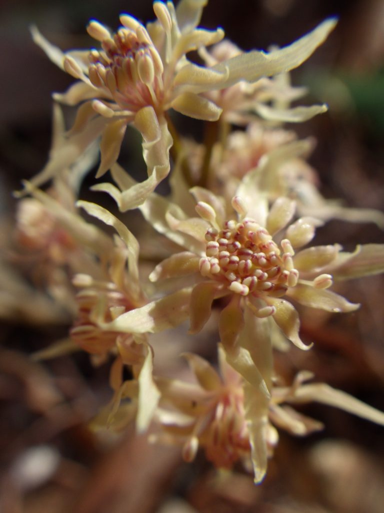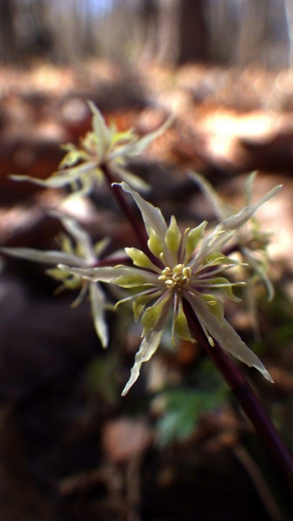昨春この花の写真を撮ったのは4月に入ってからでした。今年はなんと一か月も早く、落ち葉をかき分けるように花茎が伸びています。一輪ごとの構造がとても美しい。見惚れます。雌花、雄花、両性花が一緒に咲く種類なので、しっかり開いてきたら見分けてみましょう。