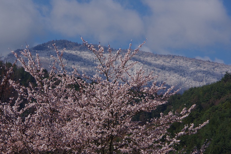今朝は氷点下2℃ほどまで冷え込みました。昨日の雨は標高の高い場所では雪になったようです。お馴染みの〝おにぎり山〟の後ろの山が白くなっていました。