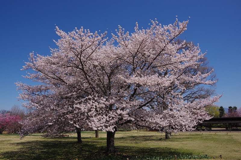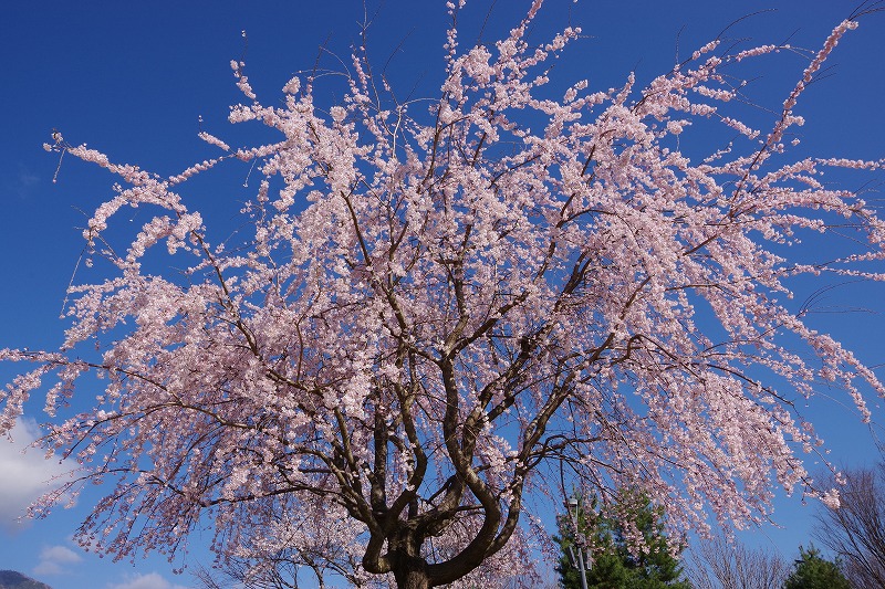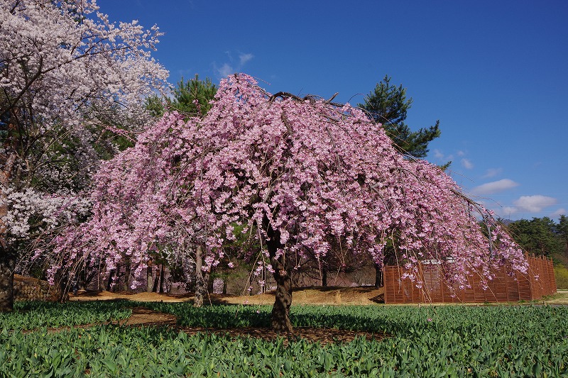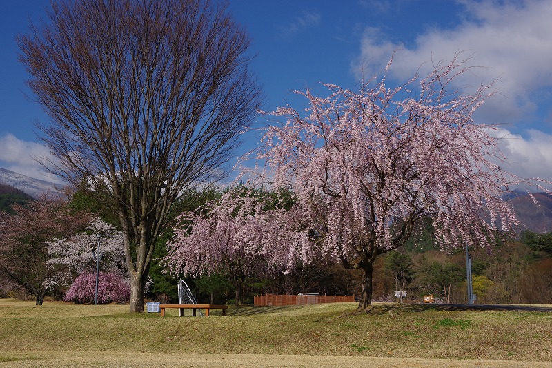 野原の東側には3本のシダレザクラがあります。エドヒガンの改良品種なので、同じ時期に咲いて、開花から満開になるのも早いのが特徴です。
