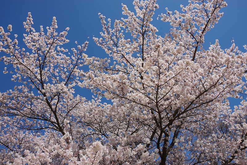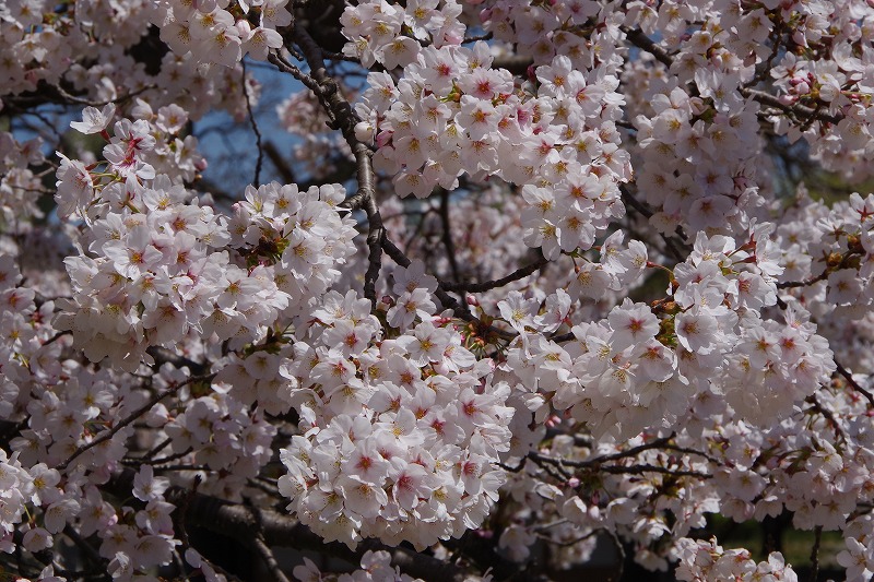 開花が早いソメイヨシノは7分咲き程度。見た目はほぼ満開です。開花が少し遅い木もありますが、週末には見頃になりそうです。お花見に来てくださいね。