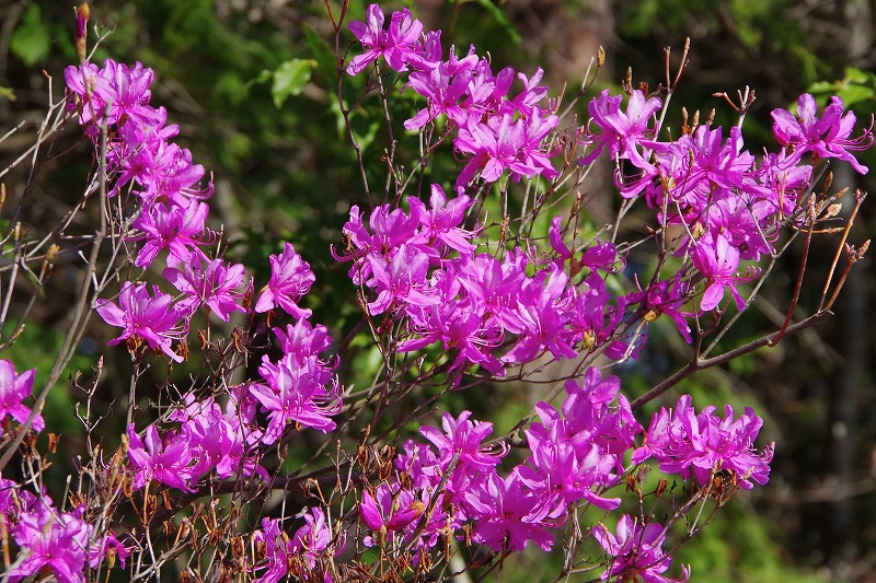 明るいピンクの花はミツバツツジです。現在公園内の各所で見頃になっています。チューリップ以外の季節のお花も探してくださいね。
