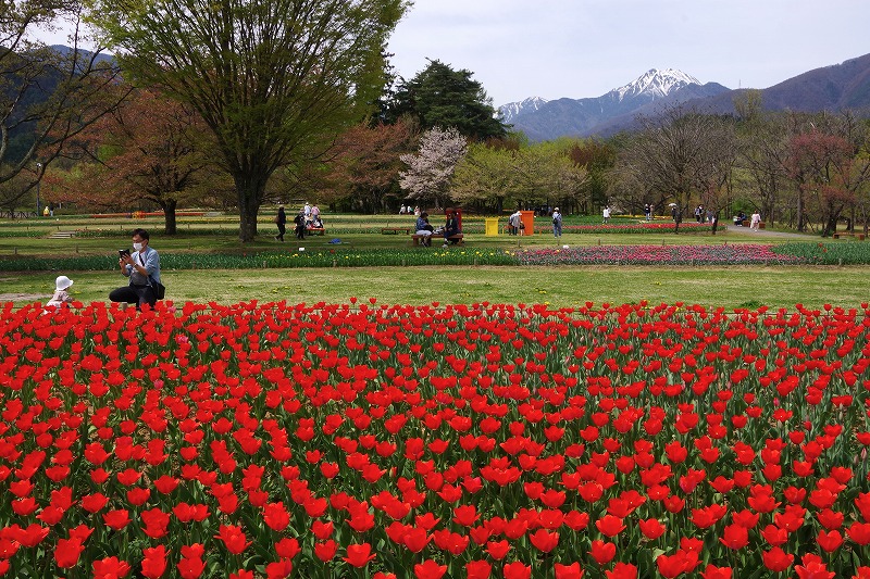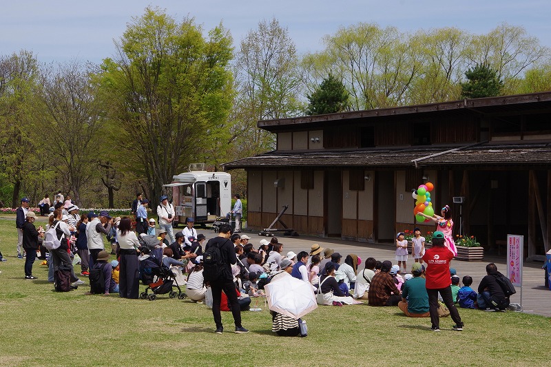 昨日と今日は、多くのお客様にご来園いただいています。田園文化ゾーンのチューリップは、早咲きの品種が一部見頃になっています。