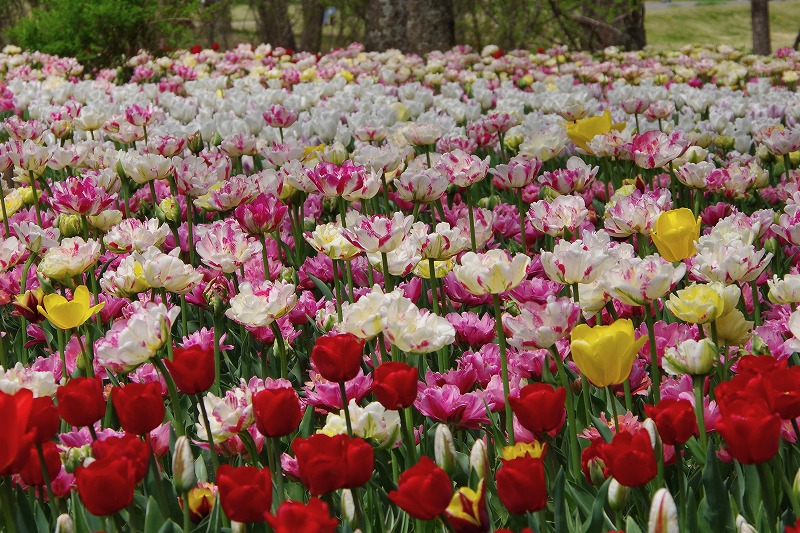 低い位置から撮影するとチューリップがギュッと圧縮されて、カラフルさも倍増します。いろんな角度から撮影してくださいね。