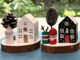 木の実や製材を使って、ミニチュアハウスを作ります。