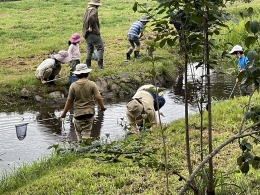 普段は入れない池の中に入って、冬眠から目覚めた生き物たちの観察会を行います。
