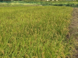 里山文化再生エリアの水田で、お米作りに必要な作業を行うボランティア。