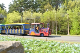 毎日運行!無料の園内バス、ロードトレインです。
