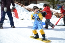 スノーキックボードやロープ付きボードで、いつもと違った雪遊びを楽しもう!